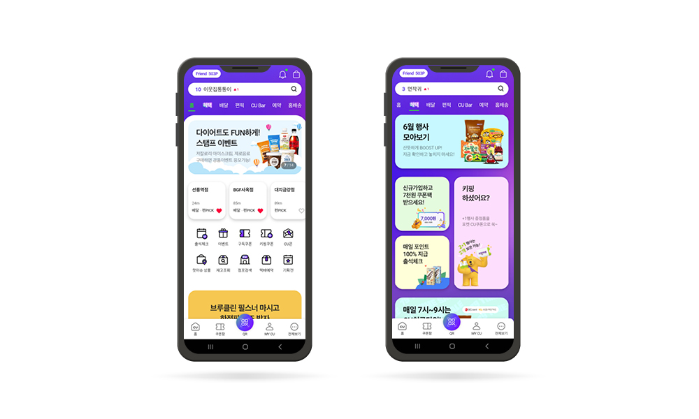 포켓CU는 ‘주머니 속 작은 CU’란 뜻을 갖고 있는 CU의 멤버십 앱입니다. 고객의 편의점 쇼핑 경험을 온·오프라인으로 연계·확장해주는 기특한 아이로서 이미 멤버십 활성화 회원 수가 600만 명, 포켓CU 활성화 회원은 350만 명에 달하고 있어요. 2022년 한국인터넷전문가협회가 주관한 아이어워즈에서 편의점 업계 최초로 최고 대상의 영예를 안기도 했습니다.