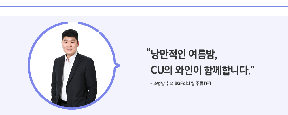 CU의 행사 와인은 편의점 업계뿐 아니라 대형마트, 창고형 매장, 백화점, 유흥업장 등 국내 전 유통채널을 경쟁 대상으로 삼고 있습니다. 고객이 CU라는 가깝고 친근한 장소에서 손쉽게, 그리고 저렴하게 와인을 접할 수 있도록 차별화된 구매 루틴을 설계하는 것이 저희 팀의 목표죠. 이 기준을 바탕으로 행사 상품을 선택 및 제안합니다. 이 눈물 나는 여정을 모두 말씀드리기는 어렵지만(웃음) 점주님들과 고객님들이 좋은 상품을 만날 수 있도록 불철주야 노력하고 있답니다.
