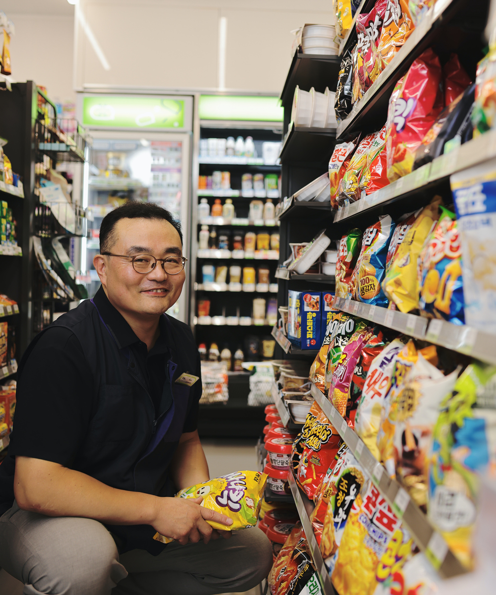 CU장위하트점은 동네 손님이 많은 지점이에요. 그래서 타 점포에서 보기 힘든 청과도 소규모로 판매하고 있죠. 가파른 곳에 위치한 유일한 편의점이라 동네 주민들에게 아주 소중한 지점입니다. 단골 고객도 많고, 바로 앞이 중학교라 학생 고객도 많아요. 때로는 졸업한 학생이 일부러 찾아오기도 하죠. 중학생이던 아이가 어느덧 어른이 되어 여자친구 손을 잡고 와서는 “아직도 계시네요”한 적도 있어요. ‘내가 장사를 너무 오래 했구나’ 싶기도 하지만(웃음) 반갑고 고마운 마음이 더 커요. 오래 자리를 지키다 보니 그런 일이 종종 있거든요. 오랜만에 옛 동네에 놀러왔다가 같은 자리에, 같은 점포가 있는 걸 보면 아주 반가워합니다. 요즘은 뭐든지 다 쉽게 자취를 감추잖아요. 그래서인지 중학교 때 봤던 아저씨가 여전히 그 자리에 있다는 사실이 참 좋은가 봅니다.