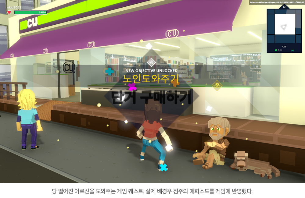 제가 편의점에서 일하는 시간이 기니까 자연스럽게 편의점을 배경으로 한 게임을 구상했어요. 일단 게임이기 때문에 미션을 설정해야 하잖아요. 그 미션을 편의점에서 생기는 사건들로 설정하면 재미있을 것 같았어요. 당이 떨어진 노인을 구하는 퀘스트도 만들고, 편의점에서 빌런(주취자나 변태)을 물리치는 퀘스트, 여성 손님을 보호하고 빌런으로부터 지켜내는 퀘스트, 점포에 침입한 도둑을 잡는 퀘스트 등 10년 넘게 편의점 운영을 하면서 겪은 일을 종합해 내용을 만들었죠.