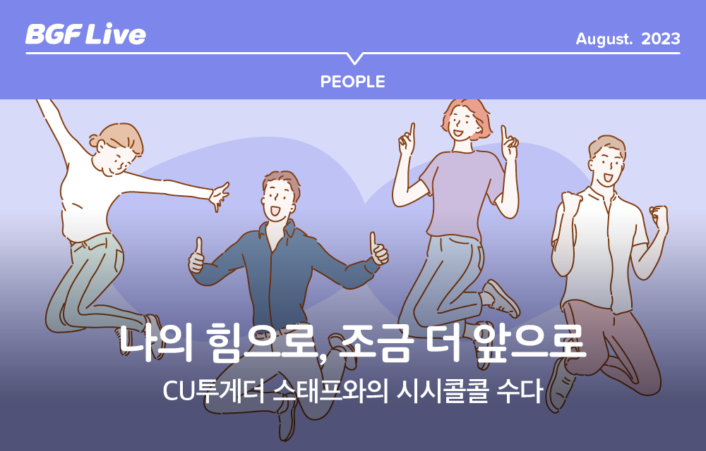 지난달에는 BGF 선릉사옥의 커피머신을 관리할 CU투게더 스태프가 새롭게 입사했습니다. 유윤제, 박선아 스태프가 그 주인공이죠. 2022년 입사한 사내 도서관 ‘글마루’의 이현석 스태프, 2020년부터 CU BGF사옥점에서 일하고 있는 유태경 스태프 역시 CU투게더 제도로 채용된 BGF 패밀리고요. CU 그리고 BGF에 대해서라면 하고 싶은 말이 참 많다는 넷의 수다, 함께 들어보실까요?
