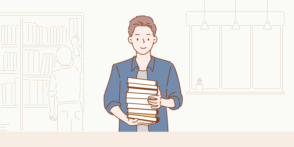 ① BGF 사내 도서관에서 사서 보조로 일하고 있어요. 오전에는 책 반납을 처리하고 오후에는 행낭을 보내요. 주로 임직원들의 도서 대여를 지원하는 일이예요.