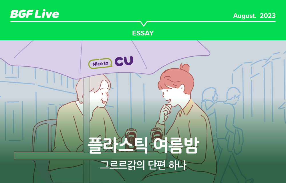 목 늘어난 티에 슬리퍼를 끌고 나온 어느 여름밤, 맥주 한 캔 잡고서 편의점 문을 열고 나오면 왜 나도 모르게 작은 숨이 탁 터져 나올까. 더운 바람 부는 저녁 편의점 의자에 앉아 떠올린 오늘은, 왜 뷔페에서 나눈 멋진 미래보다 더 가슴에 남나. 여름밤 편의점 플라스틱 테이블 위를 구르는 이야기는 그다지도 사소하고 꿈결같다. 잊을 수 없다.