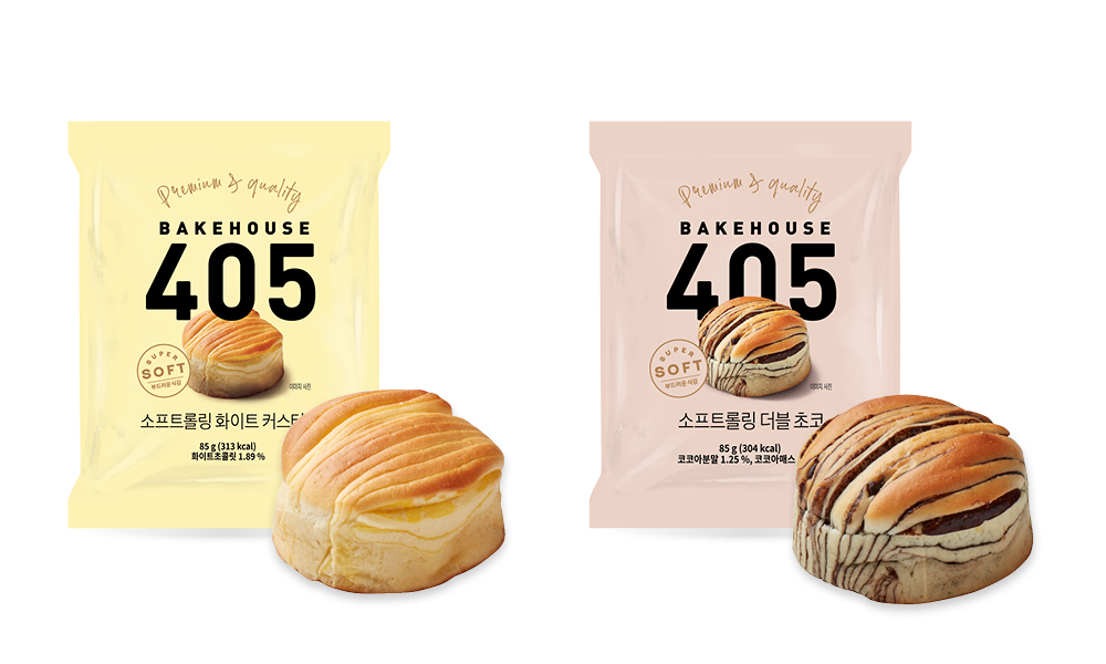 Bake House 405의 ‘소프트롤링(화이트 커스타드/더블초코)’을 만난다면 우선 천천히 갈라보세요. 돌돌 말려 있던 고운 속살이 결 따라 쪽쪽 찢어진답니다. 지금까지 편의점 빵에서 느낄 수 없었던, 차원이 다른 부드러움을 눈으로 확인하는 순간이죠.