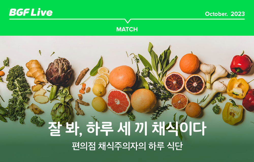 지난 칼럼 PRODUCT에서는 세계 채식인의 날을 맞이해 CU에서 출시한 채식 간편식 6종을 소개해 드렸습니다. 그렇다면 이번엔 채식 간편식과 함께 보다 알차게 하루 메뉴를 구성해 드릴게요. 나트륨과 콜레스테롤은 확 낮추고 건강 지수는 한층 끌어올릴 하루 채식 식단, CU에서 시작해 보세요!