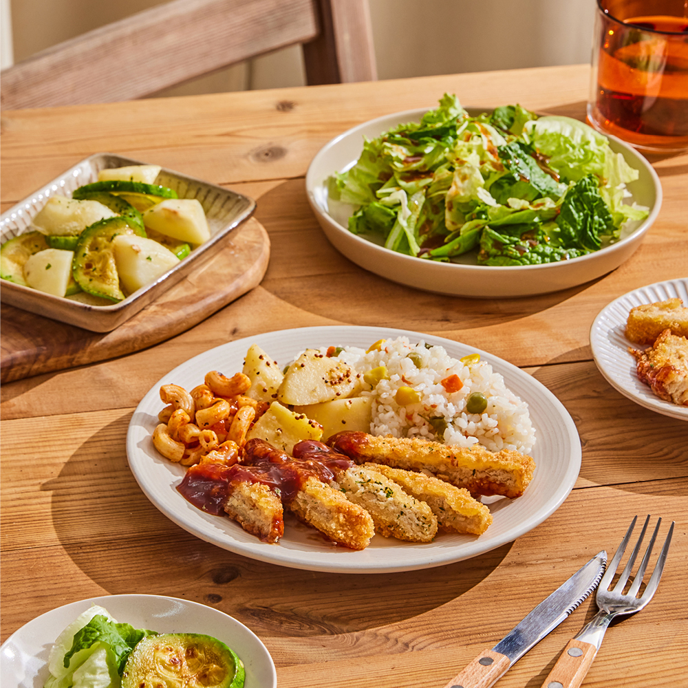 오늘 저녁에도 자신과의 싸움에 돌입했습니다. 자꾸만 고소한 튀김 생각에 입맛이 도니 말이에요. 고심 끝에 방문한 CU에서 채식카츠 정식을 만났습니다. 콩으로 만든 대체육이니 콜레스테롤 걱정도 덜 수 있고, 완두콩과 당근, 옥수수를 함께 볶아낸 야채볶음밥도 야무지게 담겨 있어 저녁 식사로 훌륭해 보이네요. 내친 김에 감자와 애호박도 구워서 반찬으로 곁들여 봅니다. 채식카츠가 있으니 짝꿍 사이드 메뉴, 샐러드도 빠질 수 없겠죠?
