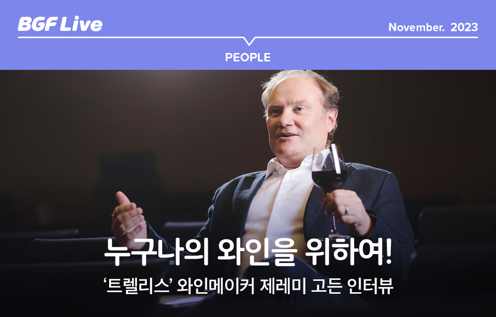 올 가을 CU 와인 매대의 격조가 한층 높아집니다. 섬세하고 예리한 장인의 손길을 거쳐, 서호주에서 막 도착한 프리미엄 와인 ‘트렐리스’가 향긋하게 점포를 채울 예정이니까요. 쉽게 맛보지 못했던, 그러나 올 가을부터는 우리 동네 CU에서도 만날 수 있을 프리미엄 와인. ‘서호주의 가장 뛰어난 와인메이커’라 불리는 제레미 고든을 만나 이번 협업의 의미와 CU 단독 출시 와인 ‘트렐리스’에 대해 물었습니다.
