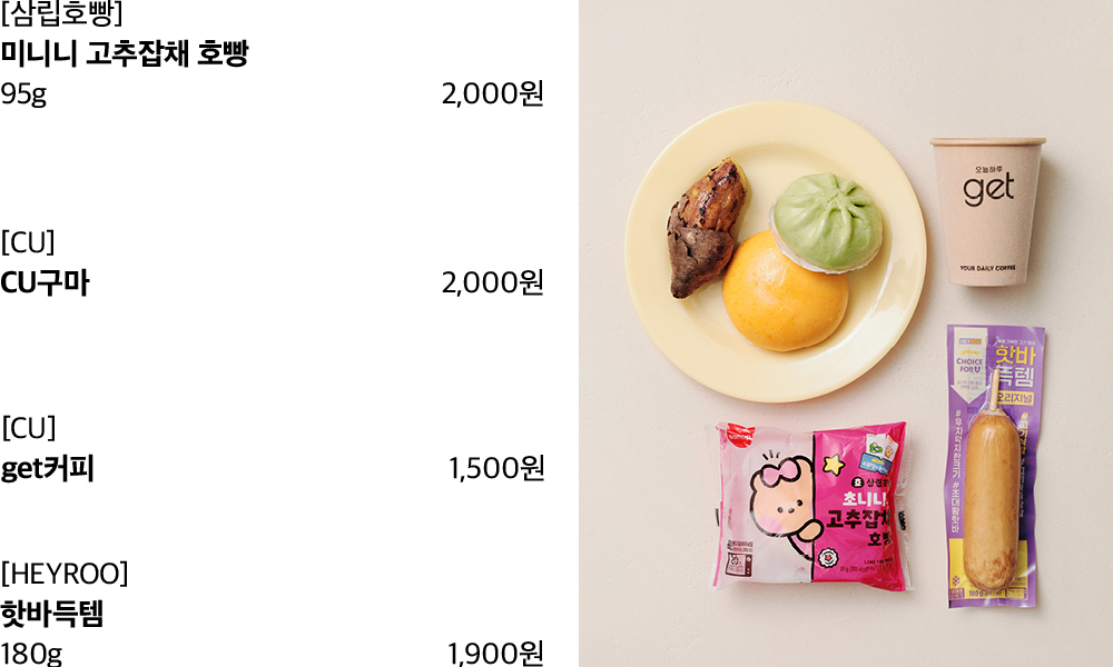 매콤달콤한 고추잡채가 듬뿍 들어간 호빵. 황치즈맛, 대파크림맛까지 3종으로 출시되었으며 귀여운 미니니 띠부씰도 들어있다.