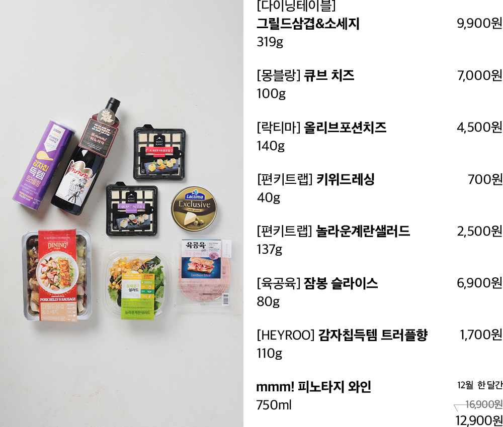 연말연시 한정 패키지, 그릴드된 통삼겹과 소세지로 연말 와인과 함께하기 좋은 안주 조합.