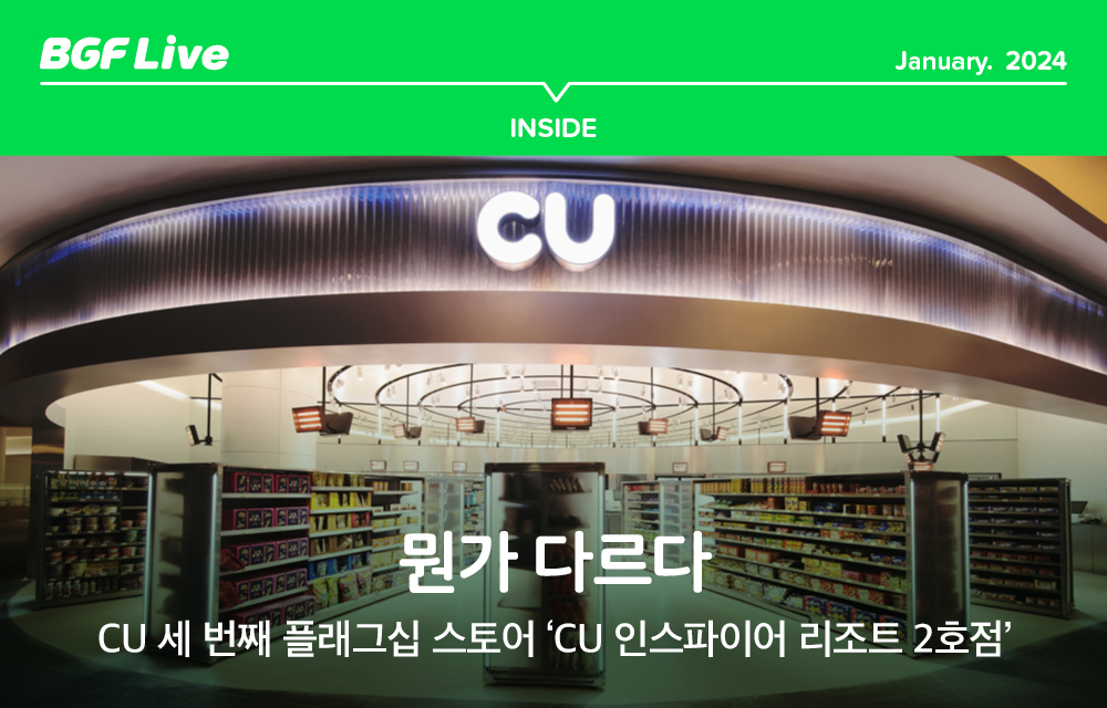 편의점이지만 편의점답지 않은, ‘일상 속 비일상’을 추구하는 이곳 CU에서 리조트 이름 ‘인스파이어(Inspire)’처럼 새로운 영감을 얻어가세요. CU 인스파이어 리조트 2호점이 편리한 일상을 넘어 특별한 경험을 선사합니다.
