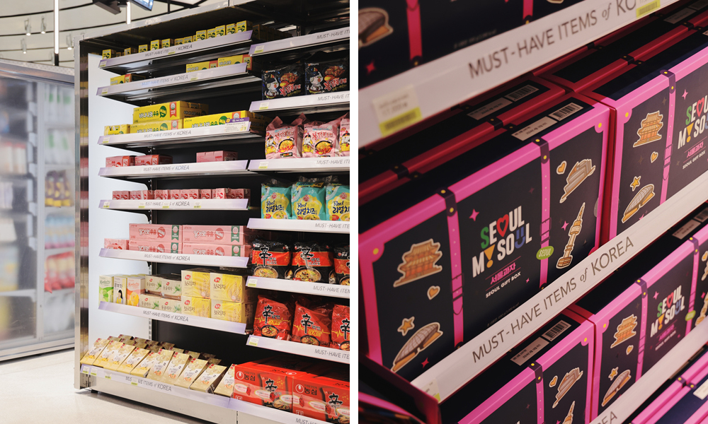K-푸드의 위엄은 K-스낵에서도 나타나죠. CU인스파이어 리조트 2호점의 진열대에도 K-스낵 상품을 가득 담았습니다. 리조트 특성상 외국인 관광객이 많은 만큼, 해외에서 인기가 뜨거운 대한민국표 과자를 모아둔 K-스낵존 ‘MUST-HAVE ITEMS of KOREA’를 따로 마련했습니다. 여러 나라 사람들의 다양한 취향을 고려해 상품 종류도 무척 다양합니다. 마트와는 차원이 다른 트렌디한 K-스낵이 한가득입니다.