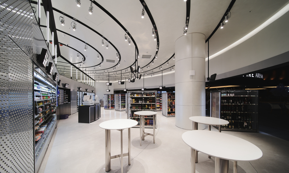 매장 중앙을 기준으로 왼편에는 작은 휴게공간이 있습니다. 새하얀 스탠딩 테이블이 비치되어 있는 이곳에서는 간단히 음료를 마시거나 그저 휴식을 즐겨도 좋아요. CU 인스파이어 리조트 2호점에서 우리는, 일상에서 벗어난 전혀 새로운 쇼핑 경험을 마주할 수 있습니다.