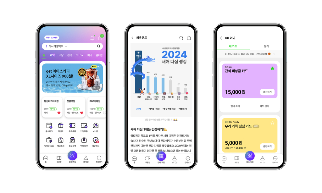 온라인기획팀과 함께 고객 소통 콘텐츠 채널 ‘씨유랜드’를 만들었어요. 나만의 닉네임 설정, 이미지 댓글, 댓글 ‘좋아요’와 답글 기능 등을 통해 CU, 그리고 라이프스타일에 관련한 다양한 정보와 이야기를 편하게 주고받을 수 있는 놀이공원 콘셉트의 커뮤니티입니다. 온라인플랫폼팀과 함께 준비한 충전형 선불카드인 CU머니 서비스도 제작했어요. 연결 계좌를 등록해 포켓CU에서 더 간편하게 결제할 수 있고, 멤버를 초대해서 그룹 카드로 사용할 수도 있답니다. 두 서비스 모두 치열한 고민을 거친 결과물이니, 모두 많이 이용해주시면 좋겠어요.