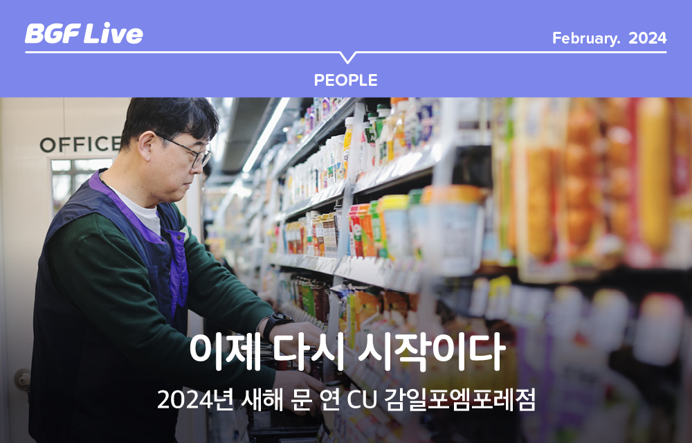“어? 여기에 CU가 생겼네?” 동네에 새로운 편의점이 생기면 공연히 반갑습니다. 반짝반짝한 간판에 가지런히 정렬된 매대, 깨끗한 집기는 물론 ‘신장개업’의 패기가 느껴지는 점주님의 씩씩한 목소리까지. 새해와 개점을 함께한 점주님이라면 그 마음 또한 새로울 텐데요. 2024년 새해 첫 문을 연 CU 감일포엠포레점을 찾아 개점의 설렘에 귀 기울여 봅니다.