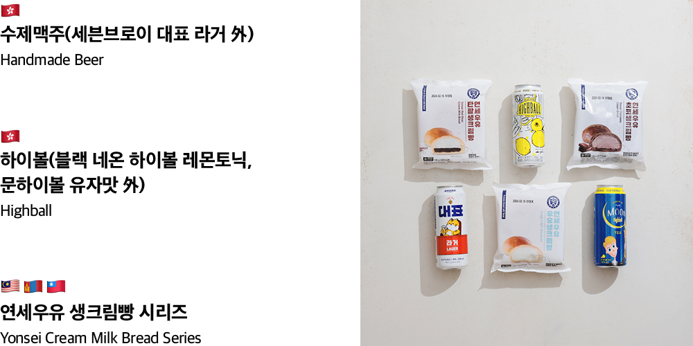 한국에서 흥한다면 외국에서도 흥한다! 주류 열풍을 이끌었던 수제맥주와 하이볼이 해외에도 진출했습니다. 고소한 크림을 아낌없이 넣은 생크림빵 시리즈도 한국을 넘어 글로벌한 관심을 받고 있고요. 우리나라에서만 할 수 있는 다양하고 맛있는 차별화 상품, 이제 CU가 세계를 접수했다고 봐도 되겠죠?