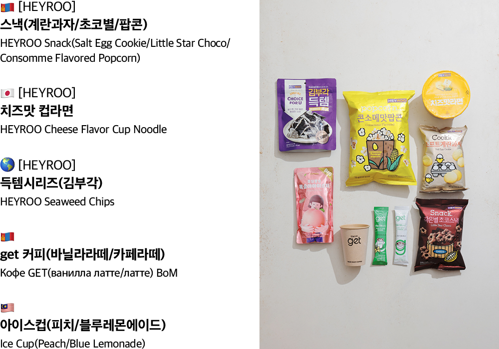 한 번 열면 멈출 수 없는 콘소메맛 팝콘, 할미입맛과 아기입맛의 교차점 계란과자, 달콤바삭한 초코별까지. 남녀노소 취향 타지 않는 세 가지 스낵이 몽골 고객의 큰 사랑을 받고 있습니다.
