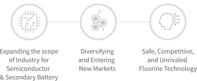 We are driving the development of the future industry by producing, selling, and providing sustainable integrated solution services for fluorine materials