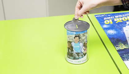 유니세프 한국위원회와 함께 전 세계의 어린이를 돕고자 전국 CU점포가 참여하는 상시 모금캠페인