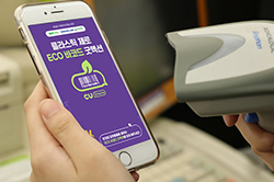 - 친환경 에코백에 인쇄된 ECO 바코드로 환경 기부금 적립