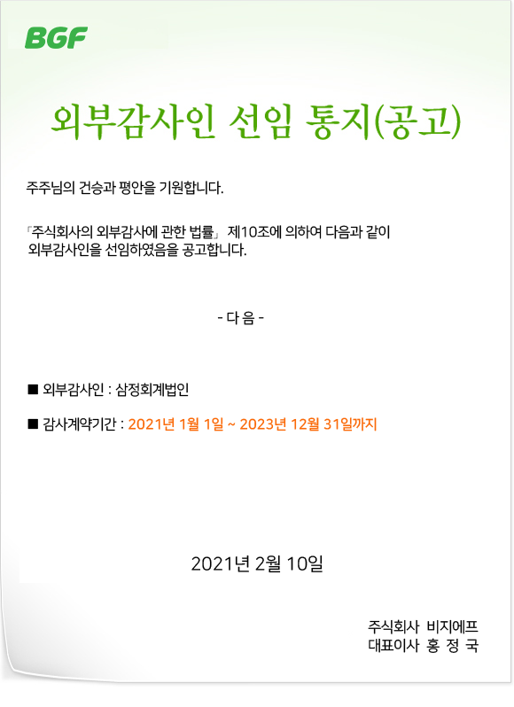 2021 외부감사인 선임 통지(공고)