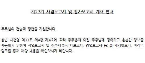 제27기 사업보고서 및 감사보고서 게재 안내