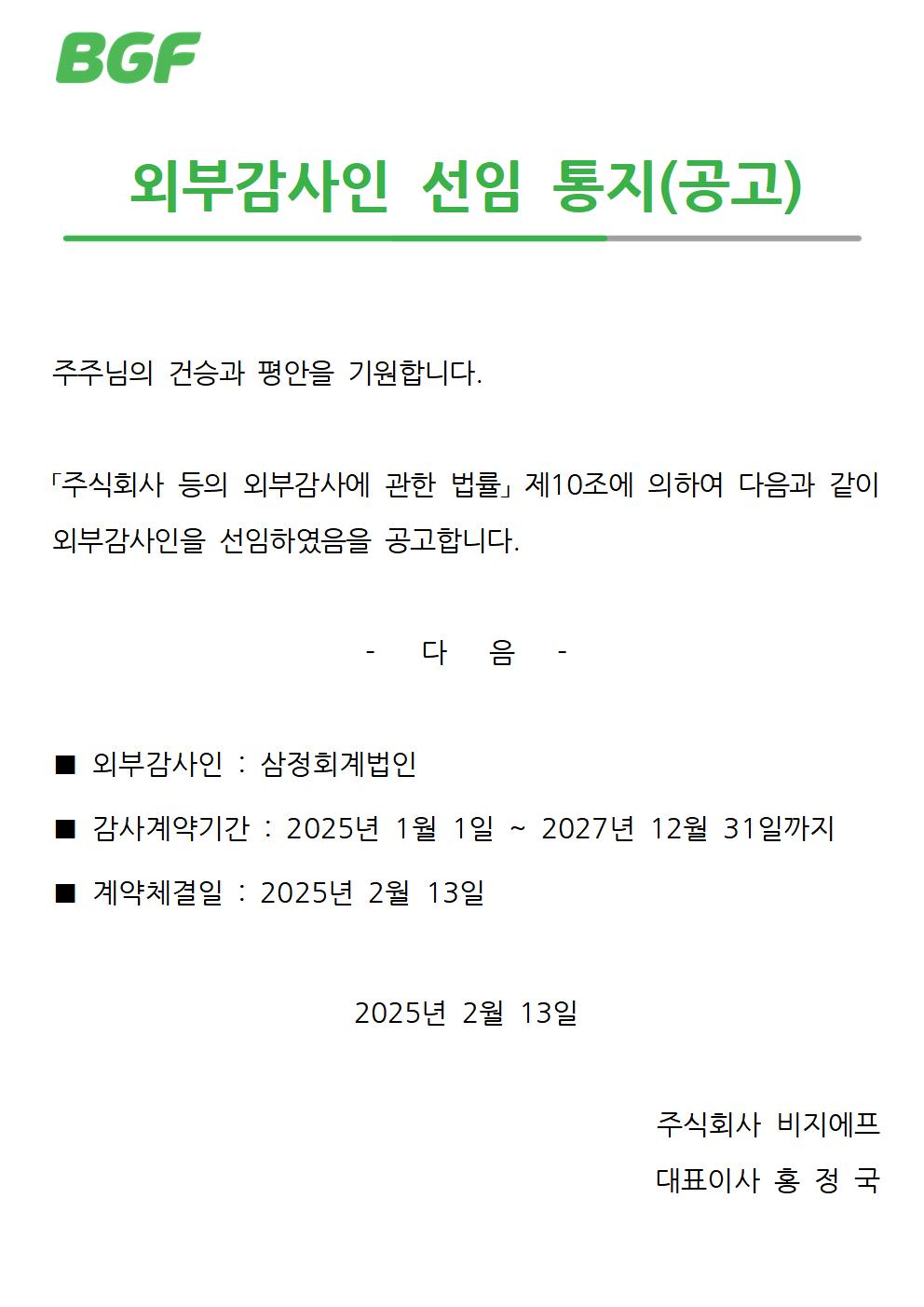 2025 외부감사인 선임 통지(공고)