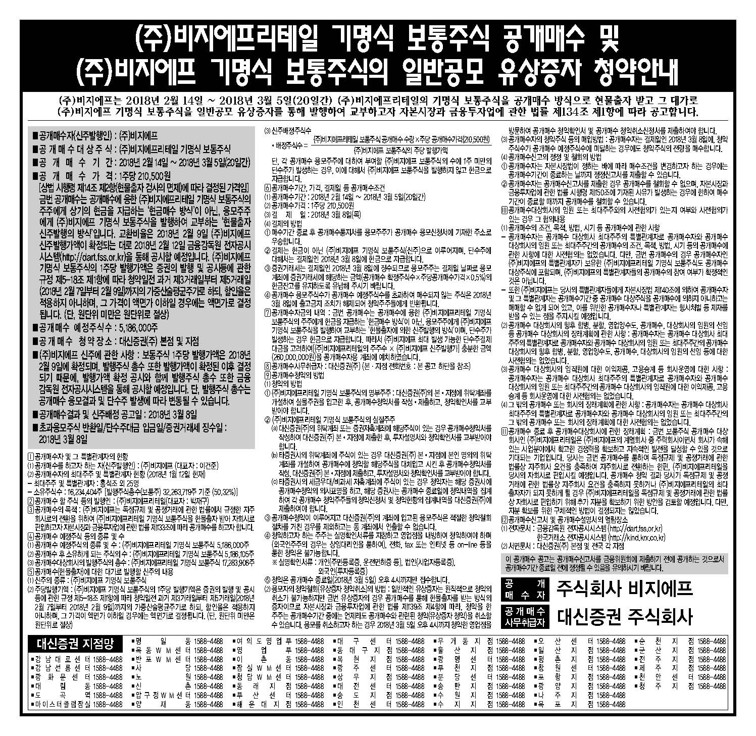 (주)비지에프 기명식 보통주식의 일반공모 유상증자 청약안내 공고