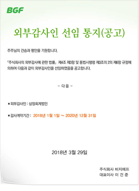 2018 외부감사인 선임 통지(공고)